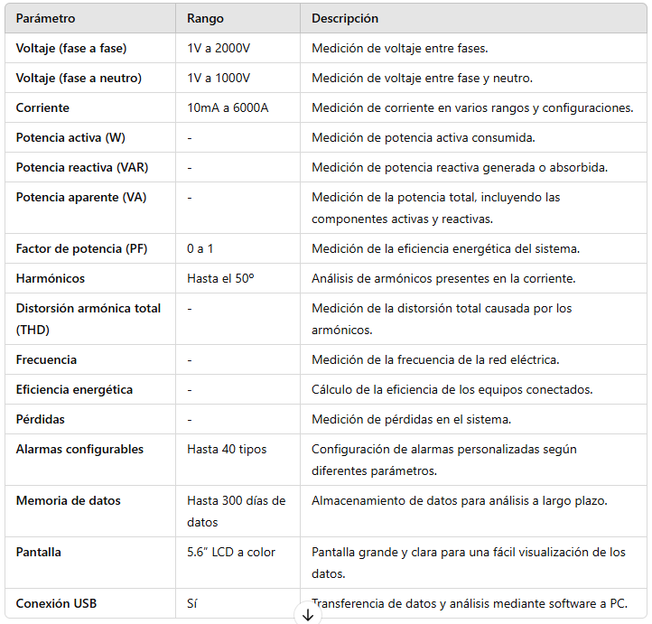 Este analizador es una herramienta esencial para asegurar la calidad de energía, mejorar la eficiencia operativa y prolongar la vida útil de los equipos eléctricos.