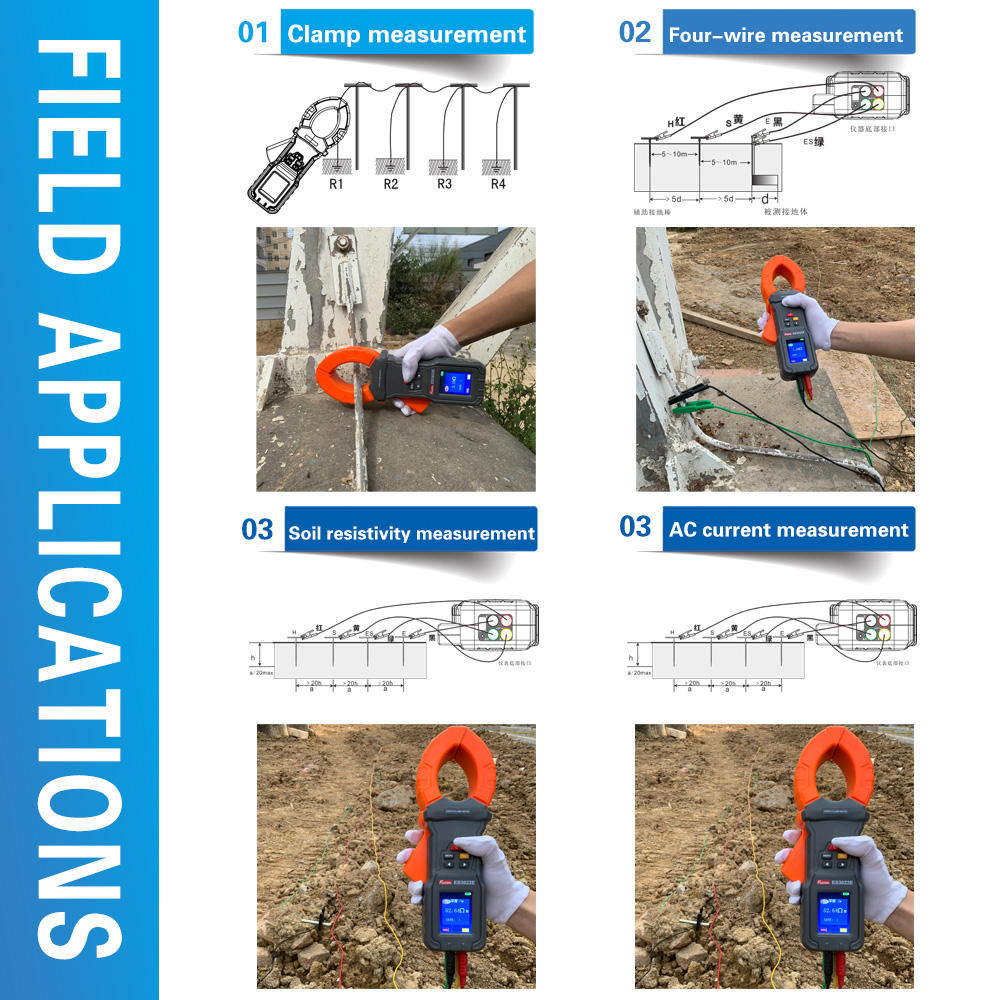 - Prueba de resistencia a tierra, prueba de resistencia de bucle, prueba de corriente AC, prueba de voltaje AC