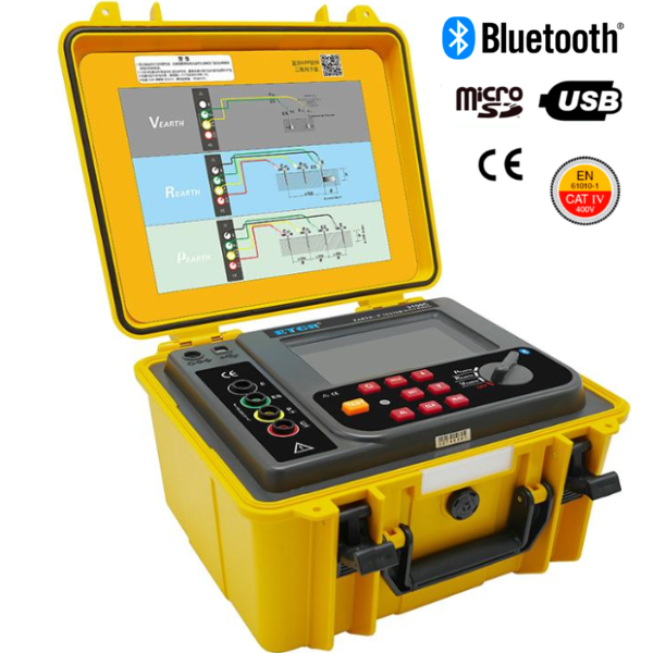 Nuestro Medidor ETCR 3100C permite realizar mediciones de resistencias de puestas a tierra Existentes y además realizar Estudios de Resistividad de Terreno para estudios y diseño de Sistemas a Puesta a Tierra y realizarlas conforme a la normativa exigida.